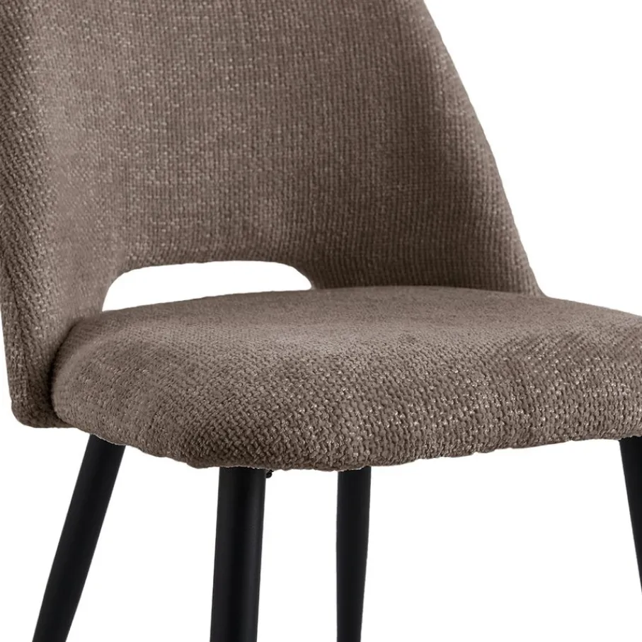 Jouw comfort staat voorop met eetkamerstoel Brogan. De stoel heeft een zithoogte van 49 cm, perfect om aan tafel te schuiven en langdurig comfortabel te zitten. De zwart metalen poten zorgen voor een stabiele basis en een modern contrast met de bekleding. Het maximale draagvermogen is 120 kg.