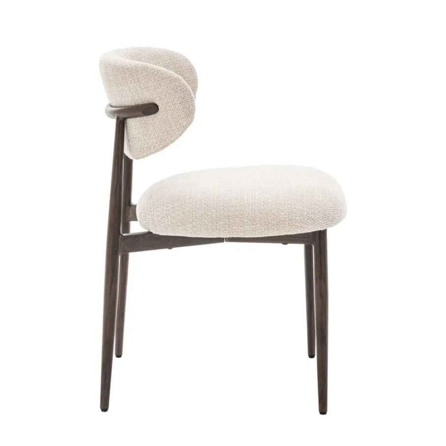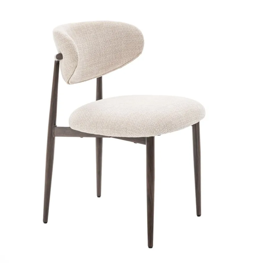 Eetkamerstoel Cleo is bekleed met een mooie, zachte stof van 100% polyester in een tijdloze beige kleur. Deze stof voelt niet alleen prettig aan, maar is ook supersterk en makkelijk te combineren met verschillende woonstijlen. Of je interieur nu landelijk, modern of industrieel is, Cleo voegt een vleugje warmte en klasse toe aan jouw eethoek.