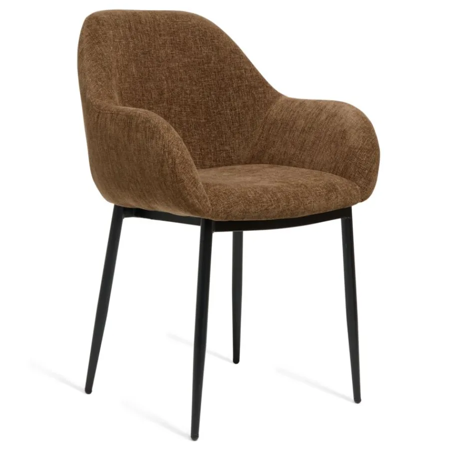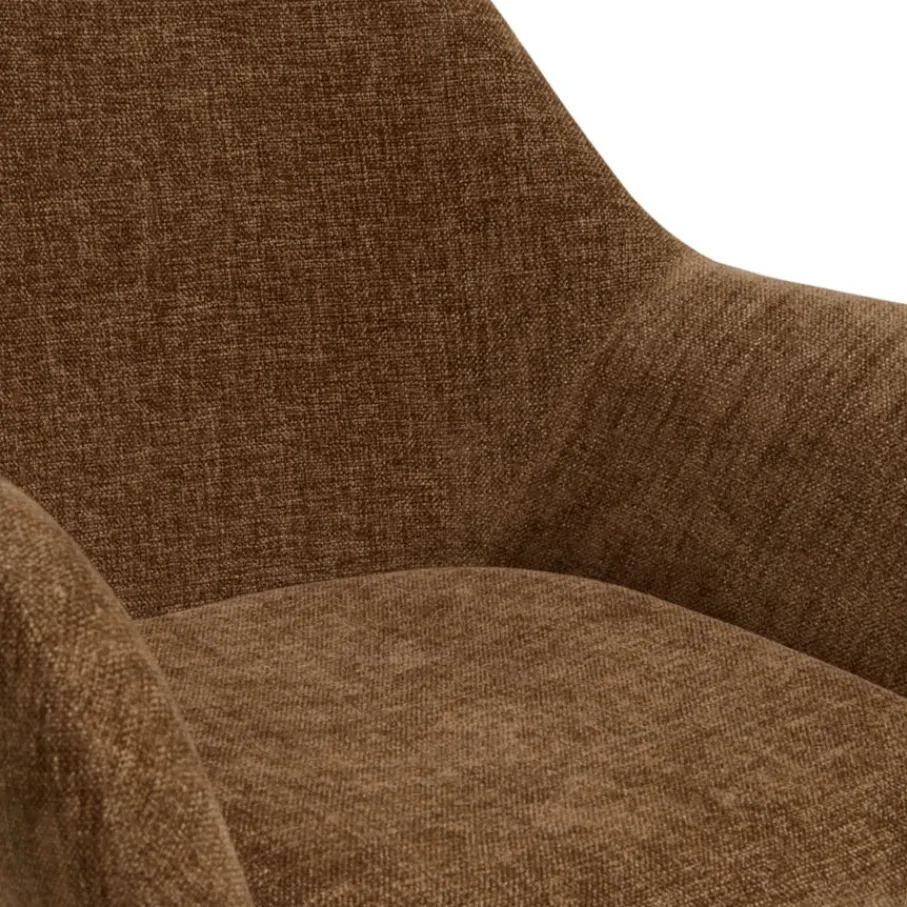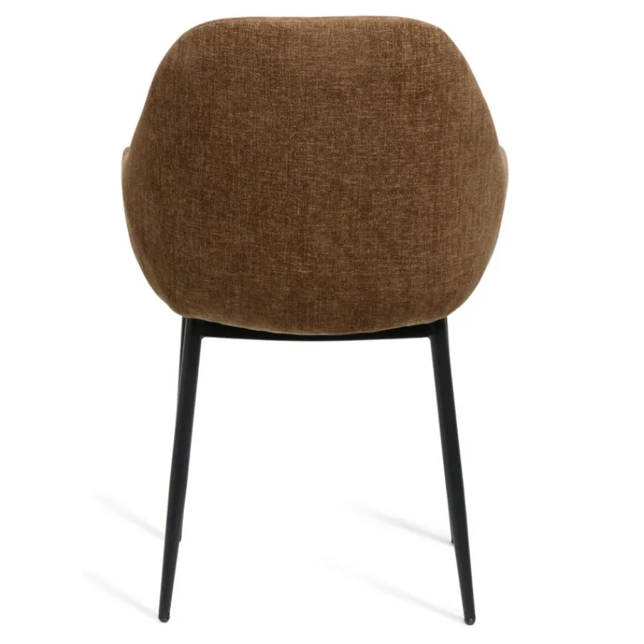 Eetkamerstoel Emma is bekleed met een chenille stof met een fijne weving. Deze verfijnde structuur voelt prettig en zacht aan, en de warme bruine kleur is een prachtige aanwinst voor je eetkamer.