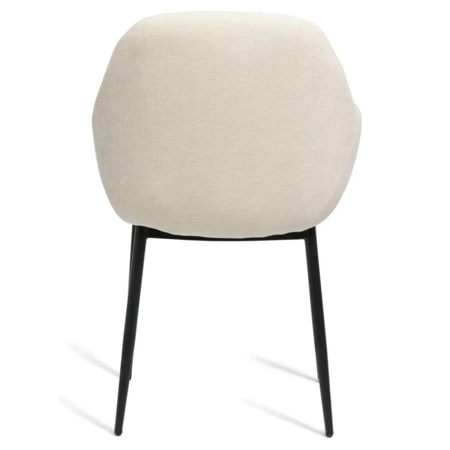 Eetkamerstoel Emma is bekleed met een chenille stof met een fijne weving. Deze verfijnde structuur voelt prettig en zacht aan, en de neutrale crème kleur is een prachtige aanwinst voor je eetkamer.