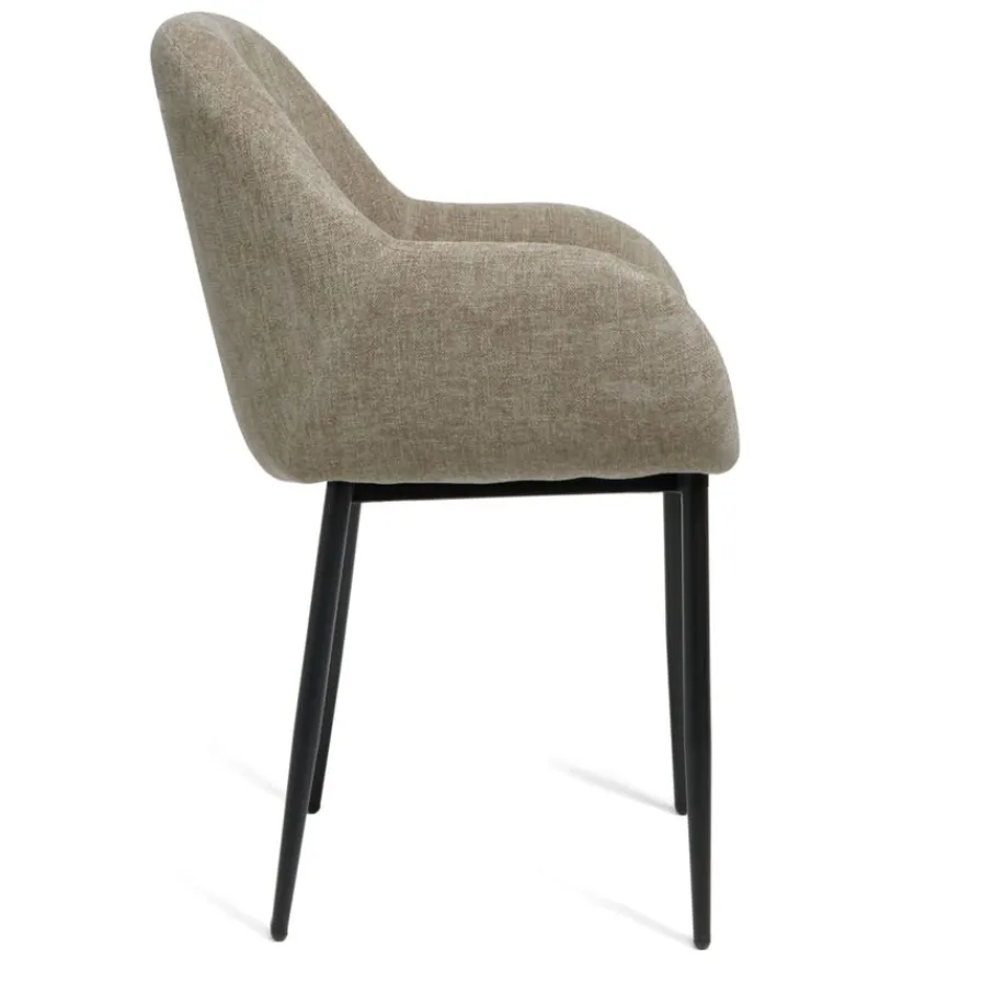 Eetkamerstoel Emma is bekleed met een chenille stof met een fijne weving. Deze verfijnde structuur voelt prettig en zacht aan, en de rustige taupe kleur is een prachtige aanwinst voor je eetkamer.