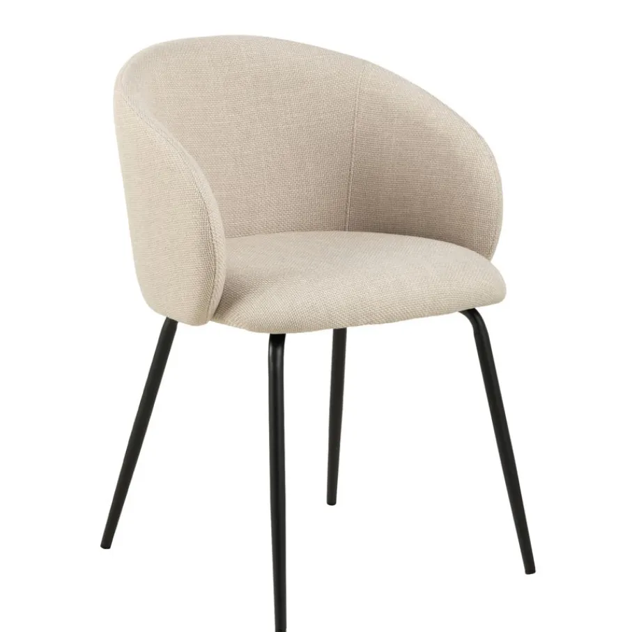 De eetkamerstoel is bekleed met stof Basel, een materiaal met een mooie geweven structuur. Een slijtvaste en sterke stof van 100% polyester. De beige kleur is warm en stijlvol en combineert makkelijk.