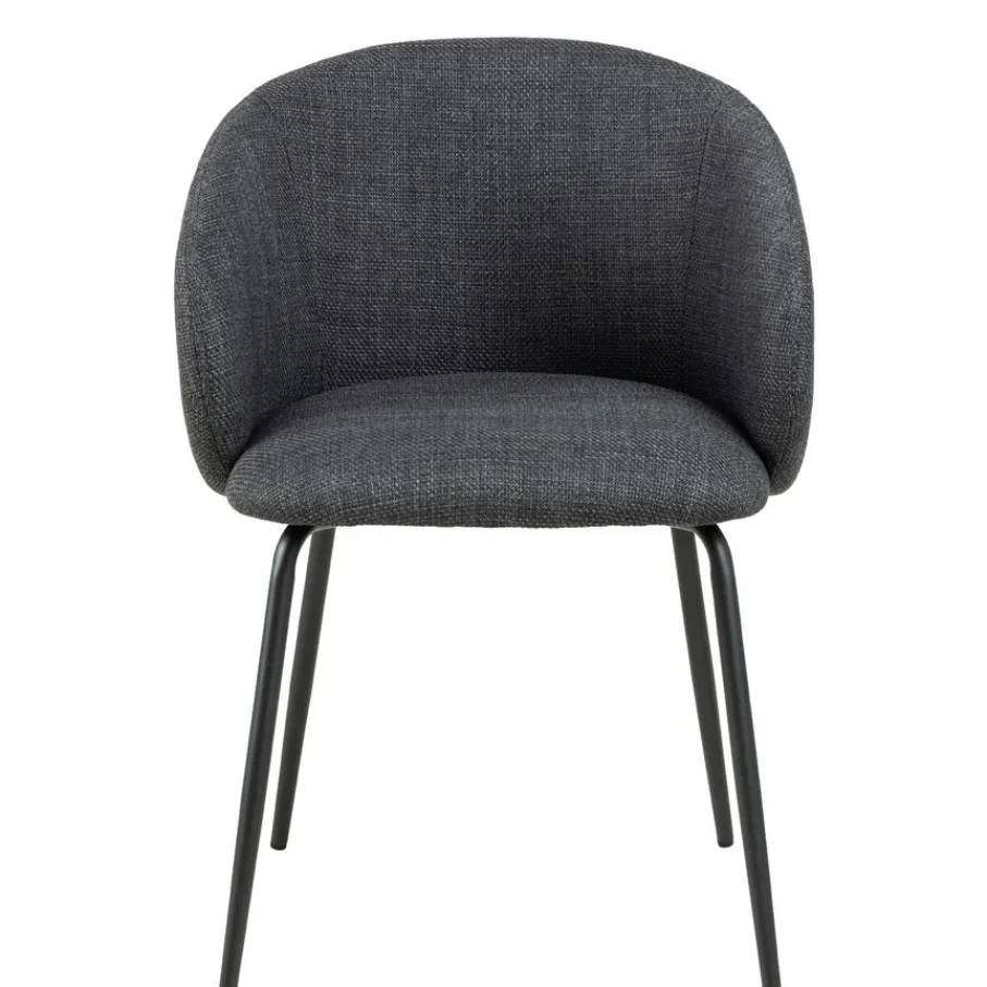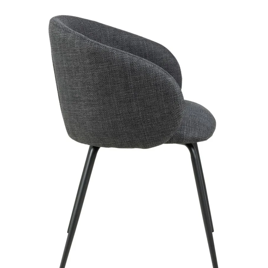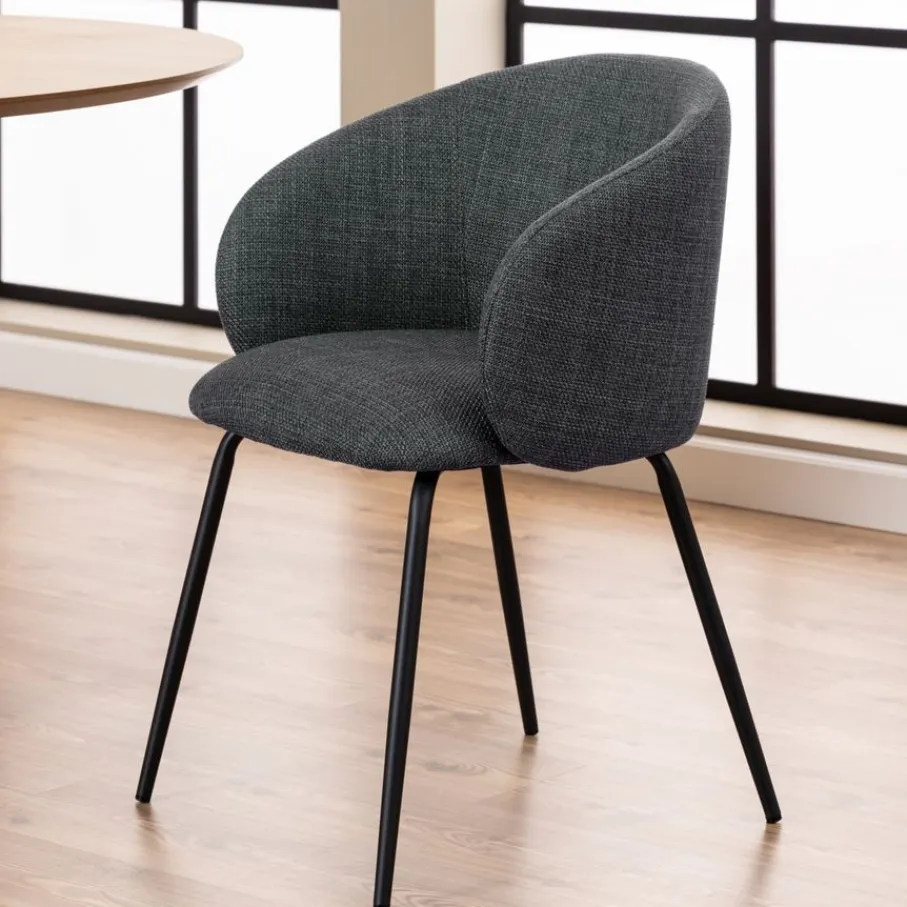 De eetkamerstoel is bekleed met stof Basel, een materiaal met een mooie geweven structuur. Een slijtvaste en sterke stof van 100% polyester. De donkergrijze kleur is modern en stijlvol en combineert makkelijk.