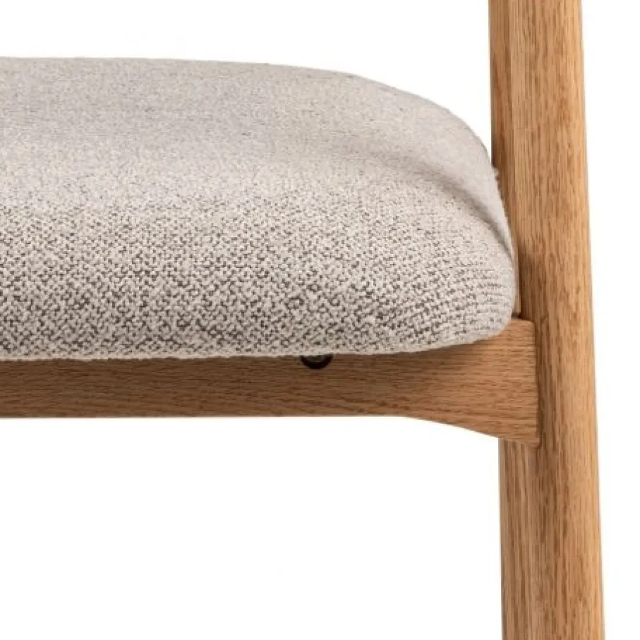De stoel is bekleed met stof Monza, een zachte bouclé stof met een rijke structuur. De beige kleur is makkelijk te combineren met diverse kleuren en stijlen.
