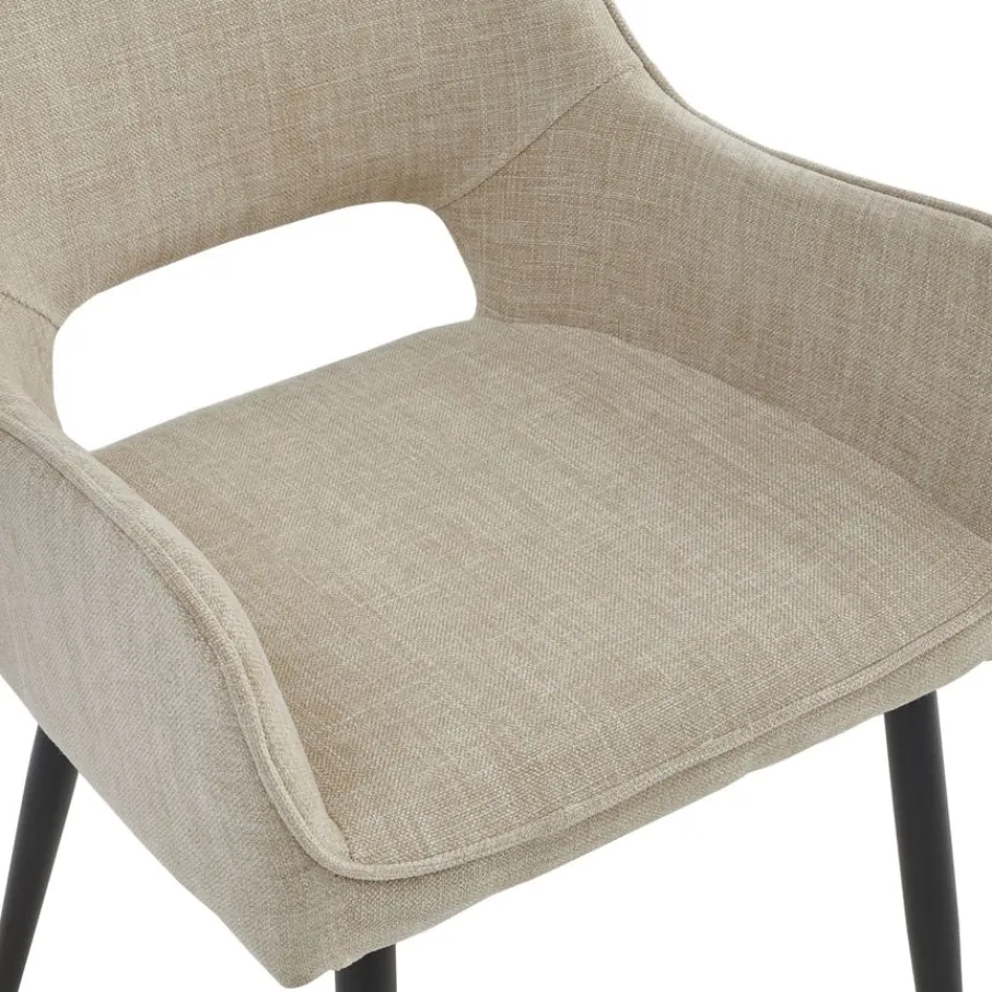 De zachte bekleding omhult eetkamerstoel Kegan en geeft je het gevoel van luxe. De stof heeft een fijne, geweven structuur en zorgt voor een sfeervolle look. De warme, beige kleur is modern en goed te combineren.