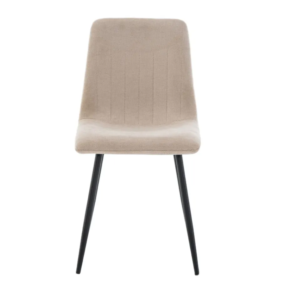 Eetkamerstoel Nessa is een echte aanwinst voor jouw eetplek. Met zijn zachte beige stof en zwart metalen poten brengt deze stoel direct warmte en een moderne touch in huis. De verticale lijnen van de doorgestikte afwerking geven er een luxueus accent aan. Zie jij jezelf al gezellig tafelen met vrienden en familie? Creëer een uitnodigende sfeer met eetkamerstoel Nessa.