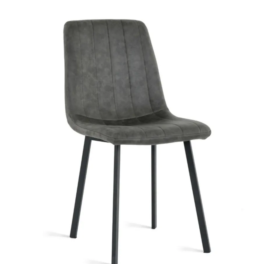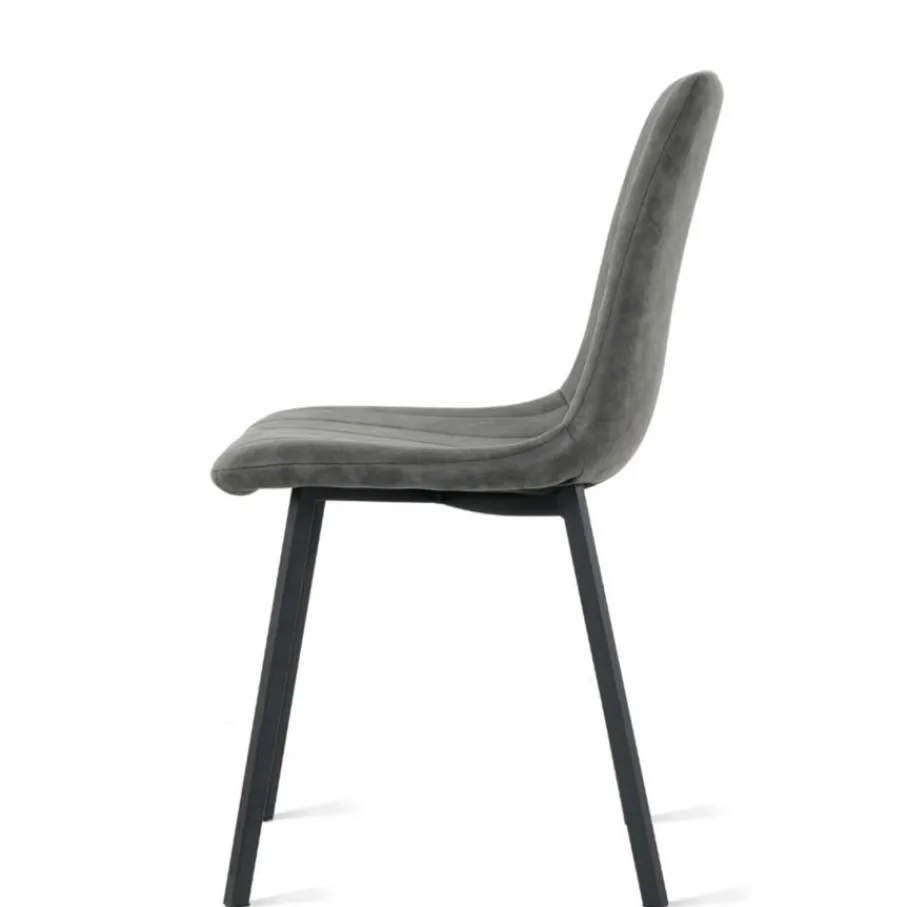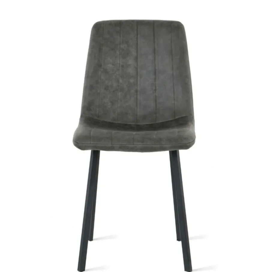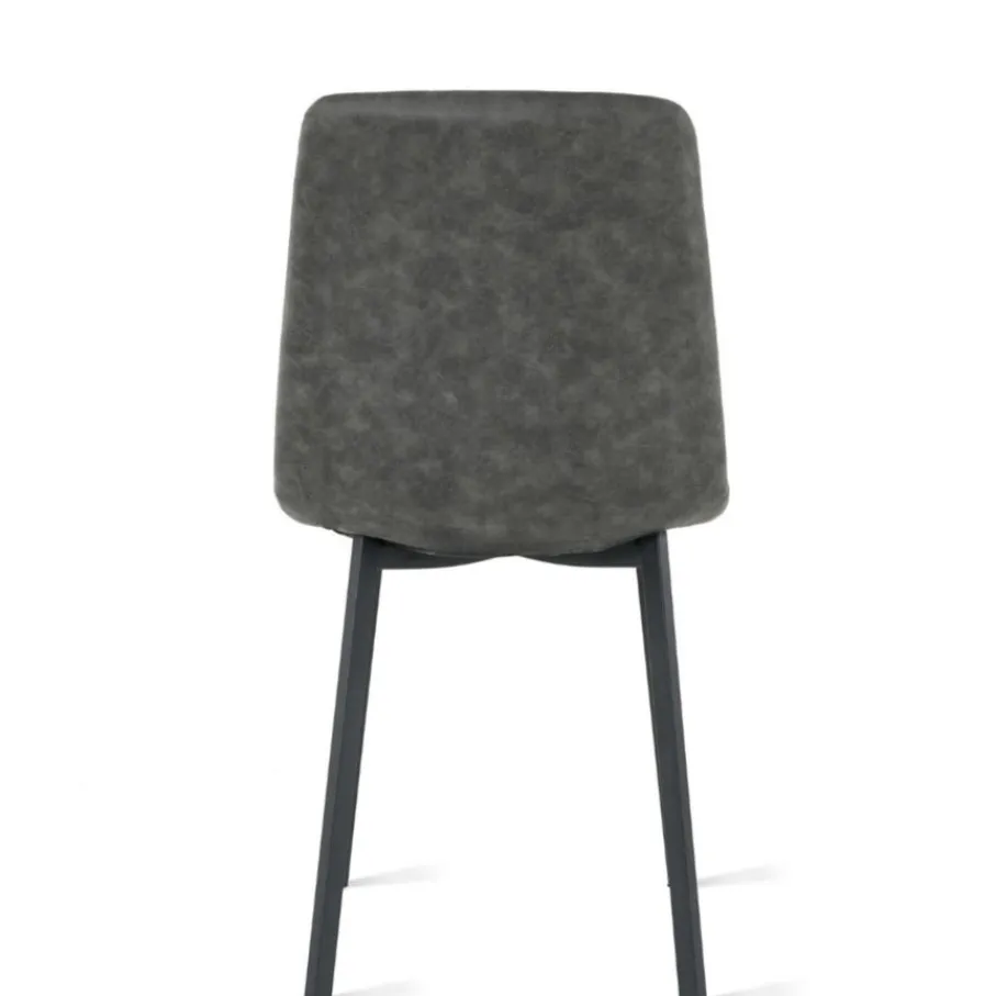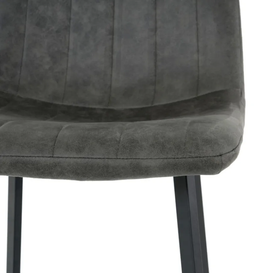 Eetkamerstoel Piet heeft een microleder bekleding. Dit is een stof met een vintage lederlook met zachte grip. De stof is wat wolkerig van kleur, die zorgt voor een warme uitstraling. De antracietgrijze kleur is een makkelijk te combineren tint.