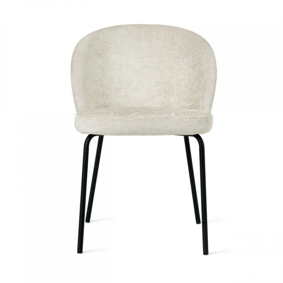 De bekleding van eetkamerstoel Tamar heeft een zacht en aangenaam gevoel en tegelijkertijd een robuust en weelderig uiterlijk. Het materiaal is grof en fluweelzacht. De kleur naturel is een gemêleerde neutrale tint.
