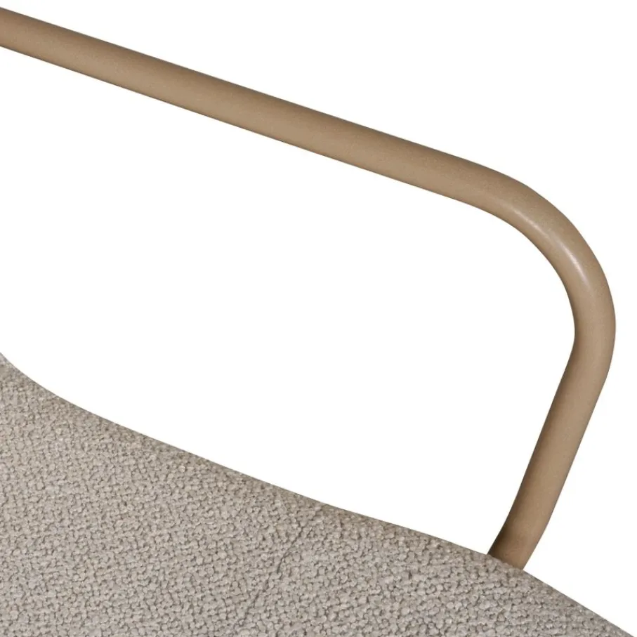 - Luxueuze bouclé bekleding in een elegante greige tint die zacht aanvoelt en visueel aantrekkelijk is.