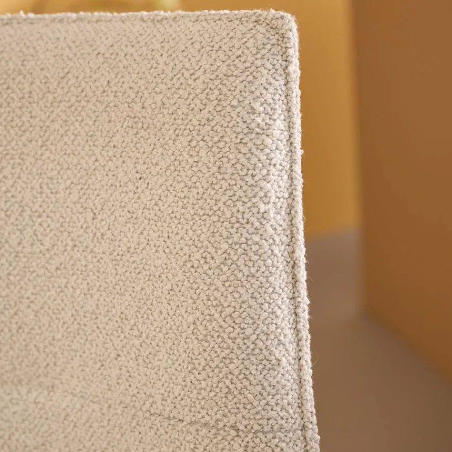 - Luxueuze bouclé bekleding met een zachte greige kleur voor een elegante uitstraling.