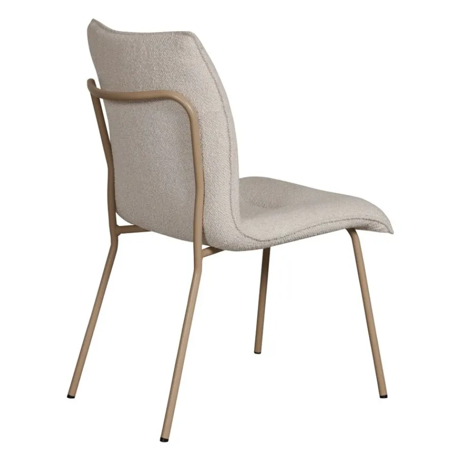 Eetkamerstoel Trondheim is bekleed met bouclé stof Cosmo in kleur Silver Cream. Deze rijke structuur stof van 100% polyester, is een sterk en slijtvast materiaal. De elegante kleur is een grijs/beige tint die makkelijk combineert.