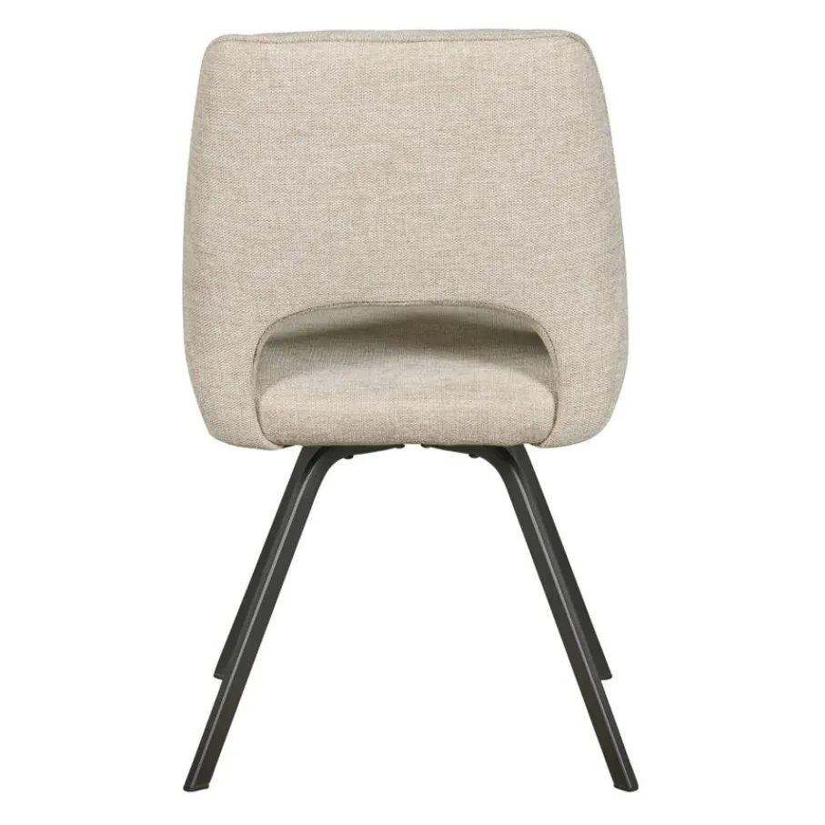 - Stevige basis met een moderne twist: De wijd uitstaande matzwarte metalen poten zorgen voor extra stabiliteit én geven de stoel een eigentijdse, stoere look.