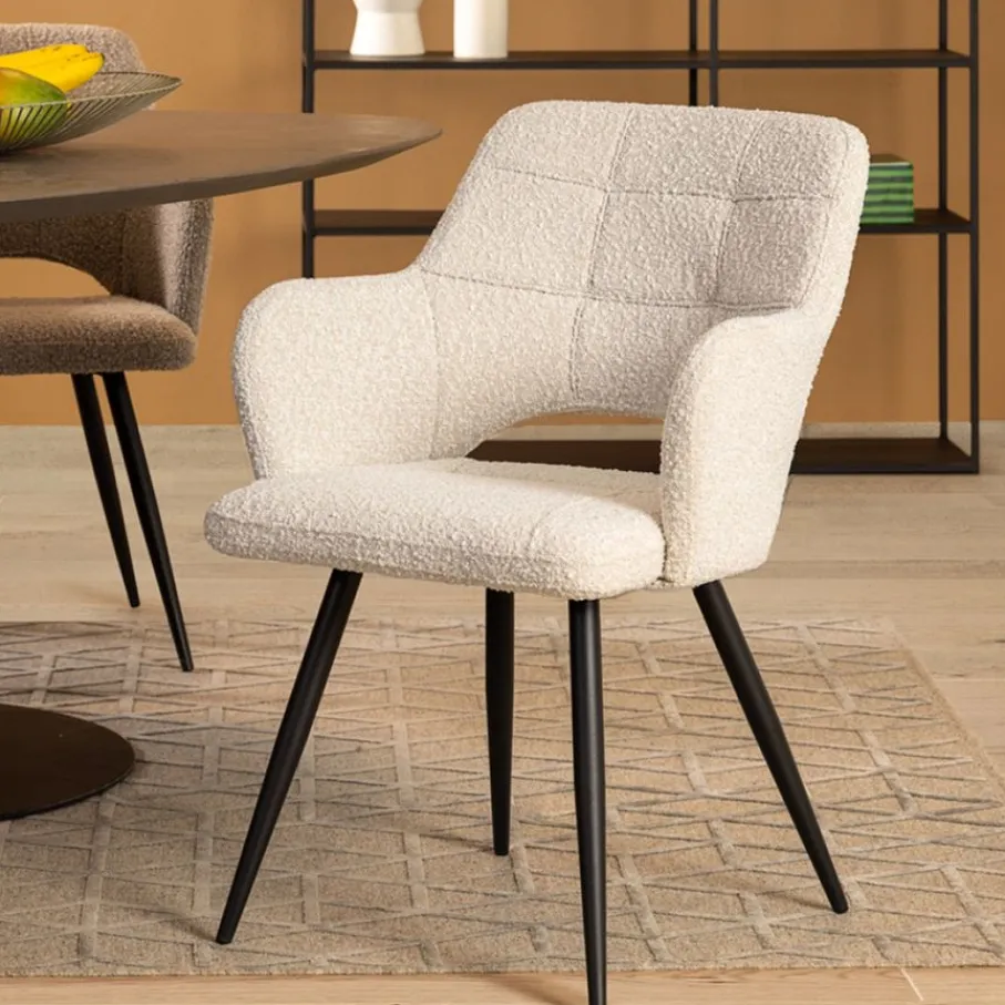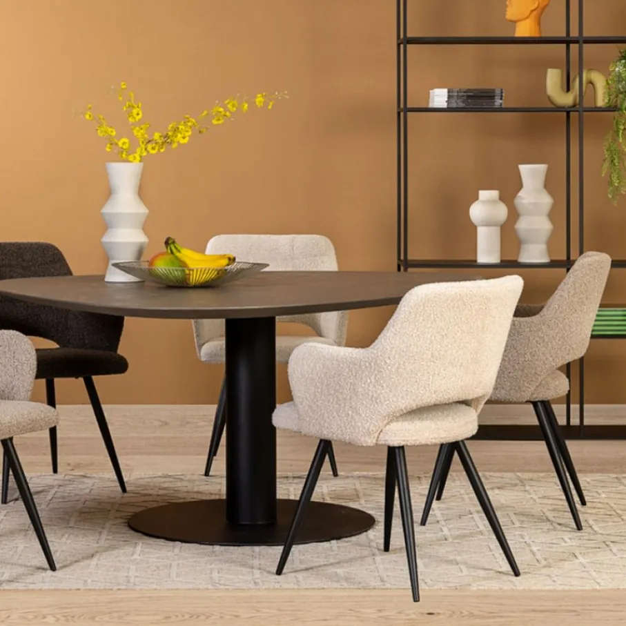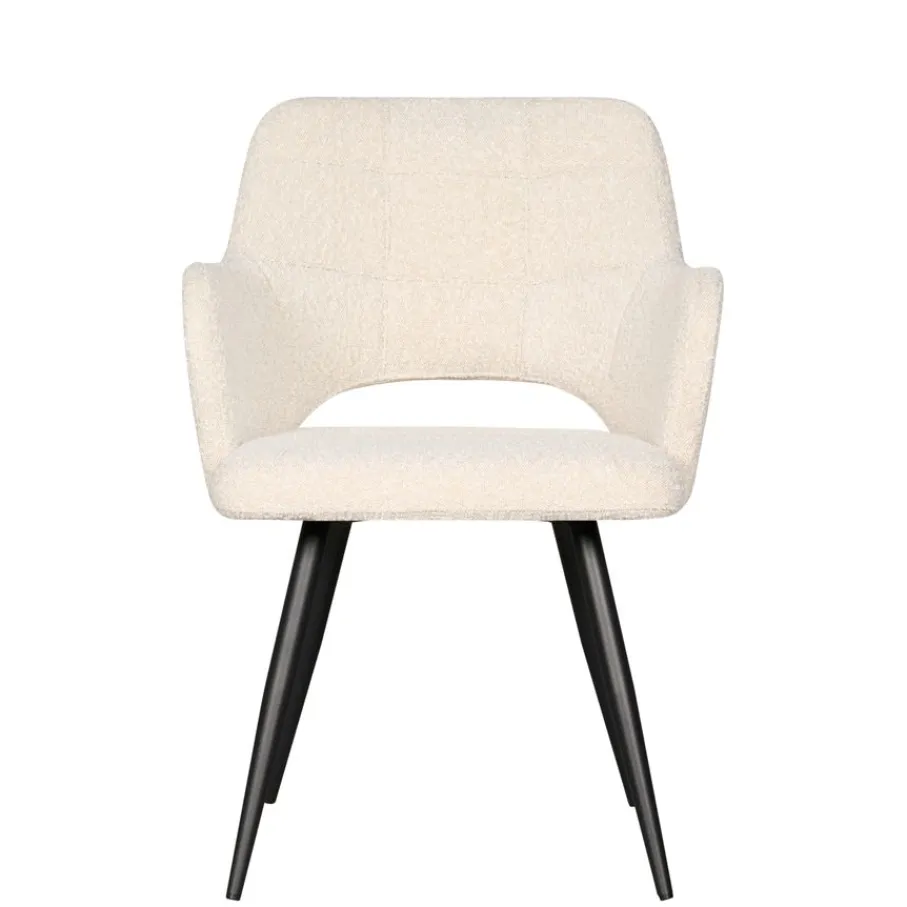- Omhelzend zitcomfort: De ronde, zachte vormen en armleuningen zorgen voor een heerlijk omsluitende zitervaring, perfect voor lange avonden aan tafel.