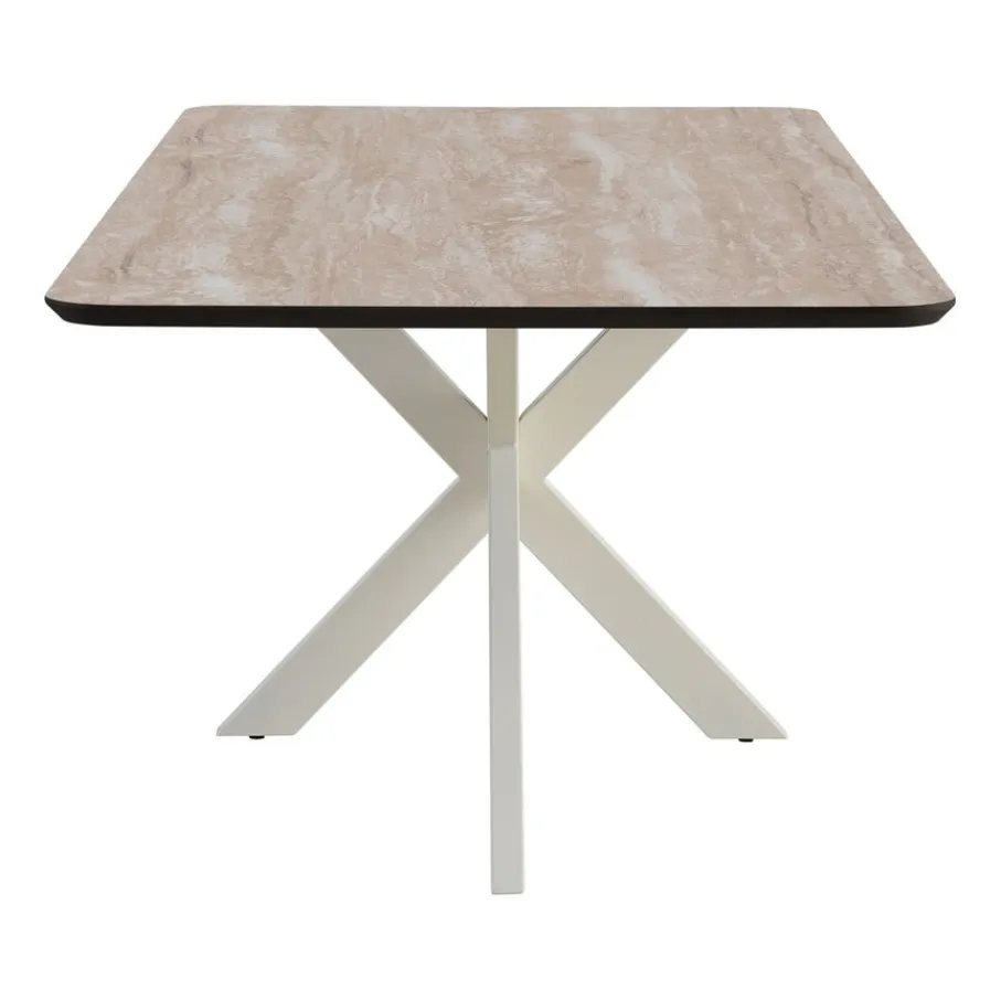 - Creëer direct een stijlvolle en moderne sfeer: Met het elegante travertin look blad en de strakke beige kruispoot geef je jouw eetkamer meteen een eigentijdse en luxe uitstraling.