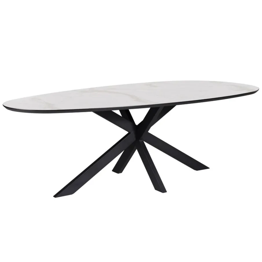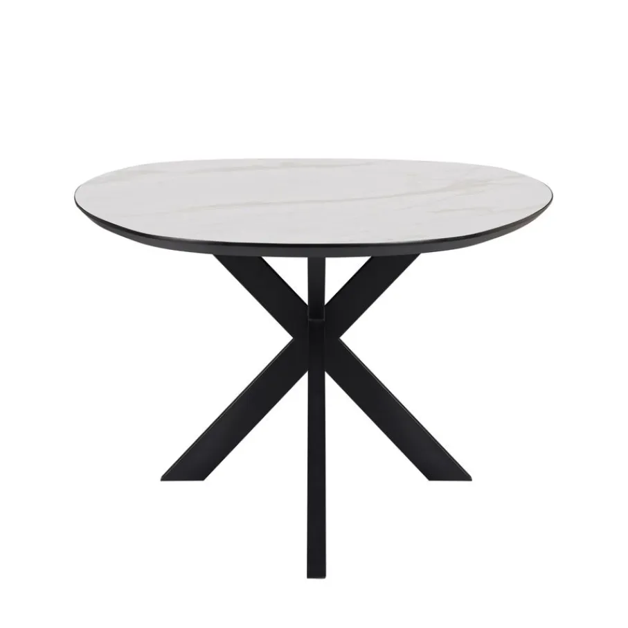 - Een modern designstatement: De strakke zwarte spinpoot van metaal vormt een stoer contrast met het elegante marmerlook blad en maakt Nyborg een echte eyecatcher.