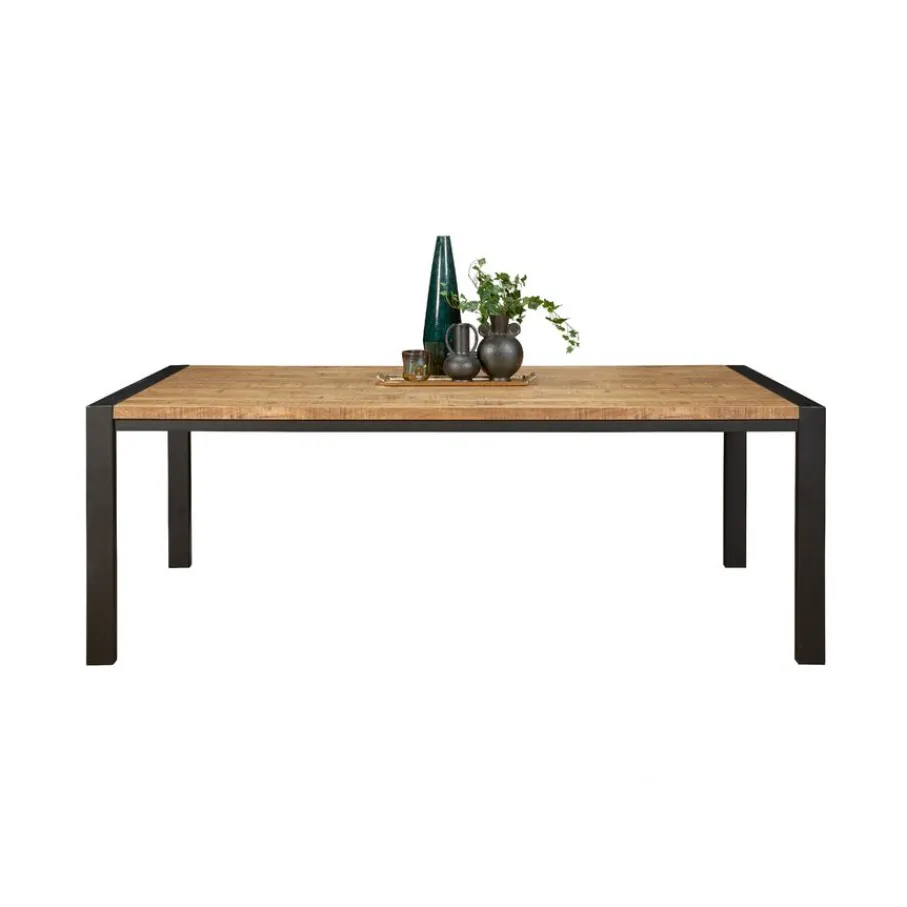 - Creëer direct een robuuste en toch warme sfeer: De opvallende mango houtlook en het stoere zwarte metalen frame geven jouw eetkamer direct karakter en gezelligheid.