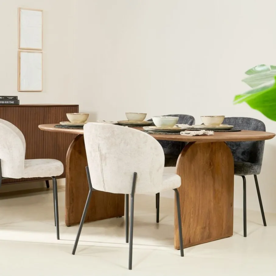 - Een uniek design dat de aandacht trekt: De opvallende poten en het ovale blad geven eettafel Verla een moderne en toch natuurlijke uitstraling die perfect past bij jouw stijl.