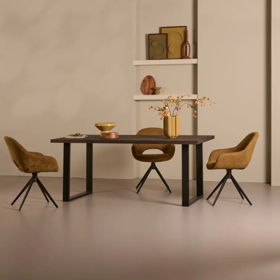 - Een tijdloze blikvanger in je huis: De rechthoekige vorm en de diepbruine kleur ‘Kool’ met zwarte metalen U-poten passen perfect bij verschillende woonstijlen en trends.