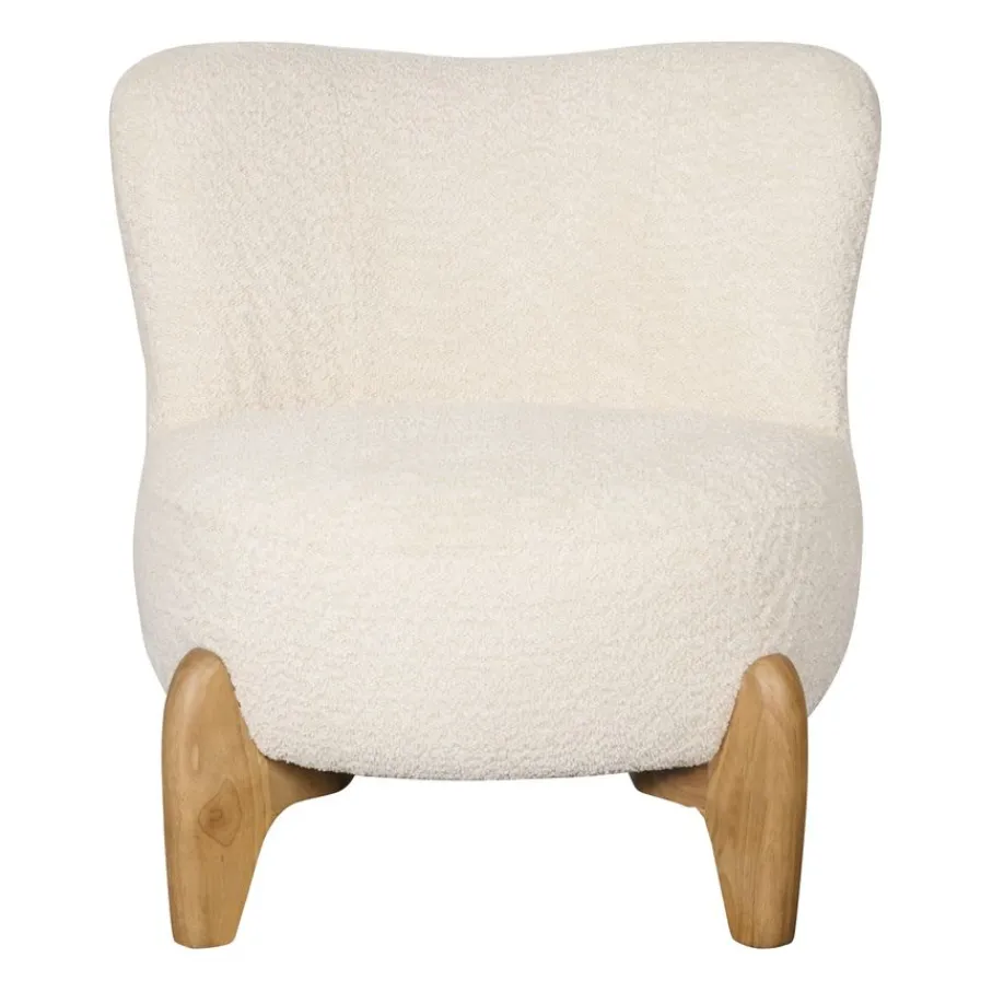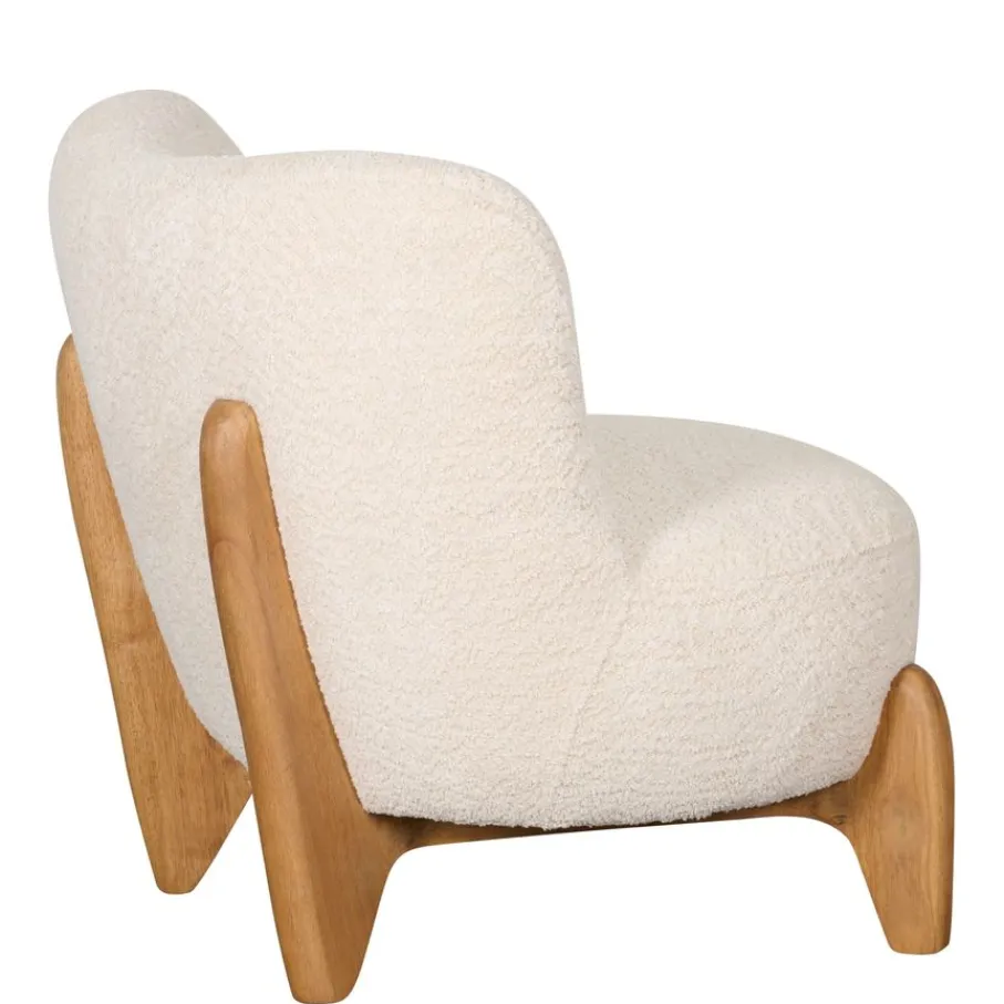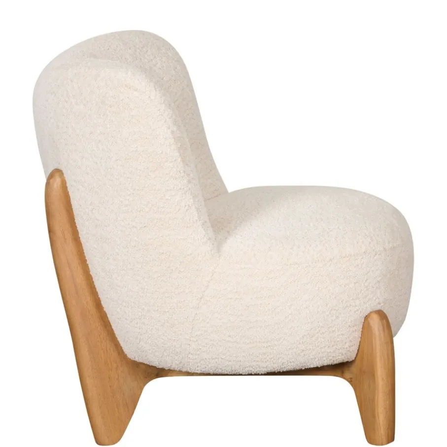 De fauteuil is bekleed met stof Crunch. Dit is een rijke structuur stof van 100% polyester, die heerlijk zacht aanvoelt. De kleur Natural is een crème kleur die een warme combinatie vormt met de houten poten.