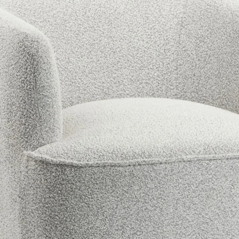 Met de pluche bekleding voelt deze stoel heerlijk aangenaam en knus. De bouclé stof heeft een rijke structuur en de naturel kleur is makkelijk te combineren.