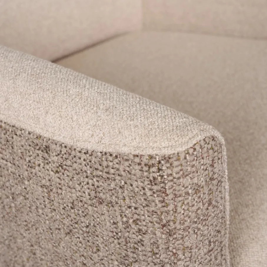 Fauteuil Sluis heeft een speelse en sfeervolle duo stoffering. De buitenkant is bekleed met een robuuste bouclé stof in kleur Mocca. De binnenkant bestaat uit een structuurstof in kleur Desert. Deze stoffen van 100% polyester voelen prettig aan en zijn ook nog eens sterk, perfect voor intensief woongebruik. De neutrale, warme tinten maken Sluis supergemakkelijk te combineren met verschillende woonstijlen en kleuren in jouw interieur.