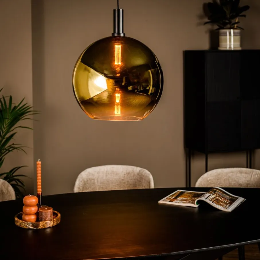 - Het gouden glas zorgt voor een warme, gefilterde gloed, wat de lamp meer een sfeermaker maakt dan een felle functionele lichtbron.