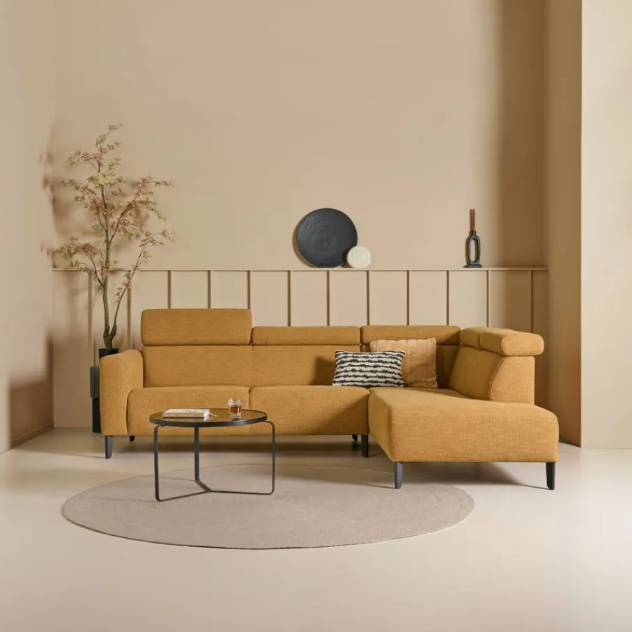 - Hoekbank met divan rechts in okergeel