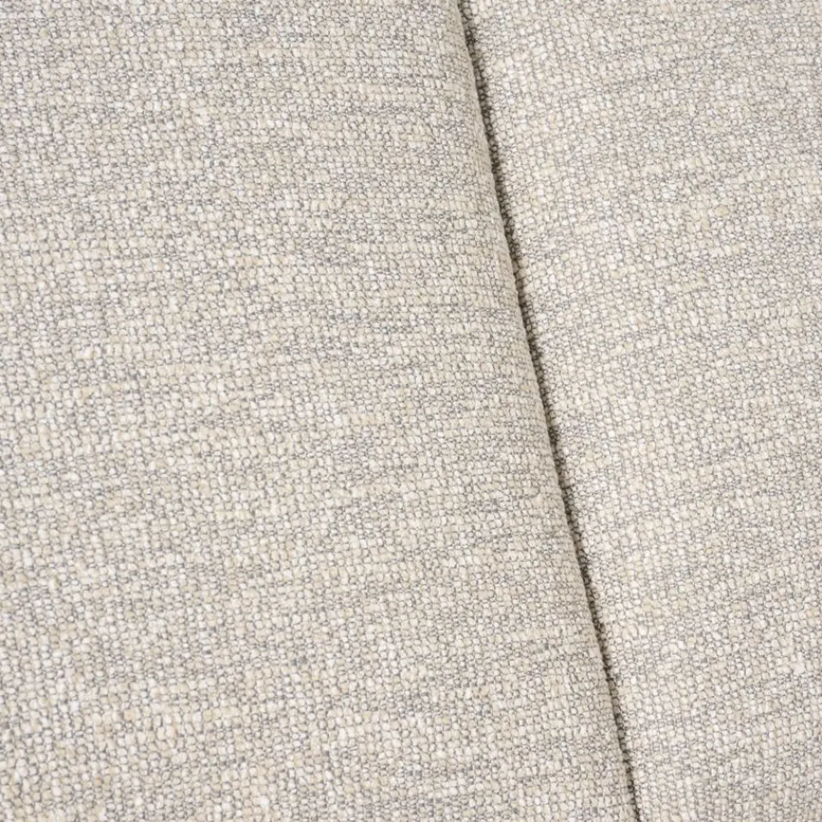 Badu is bekleed met een elegante bouclé stof. De bekleding heeft een rijke structuur en voelt heerlijk zacht aan. Het is gemaakt van 100% polyester en is sterk en goed kleurvast. De kleur Clay is een gemêleerde greige tint, een neutrale en rustige kleur die makkelijk te combineren is.