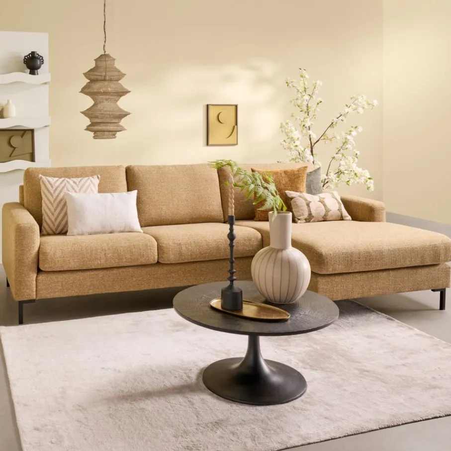 - Met zijn strakke vormgeving en hoge metalen poten is deze hoekbank een echte blikvanger die je interieur een eigentijdse touch geeft.