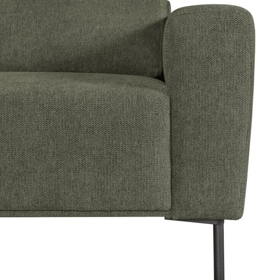 - De hoge zwarte metalen poten geven de bank een luchtige look en maken het schoonmaken eronder supermakkelijk.