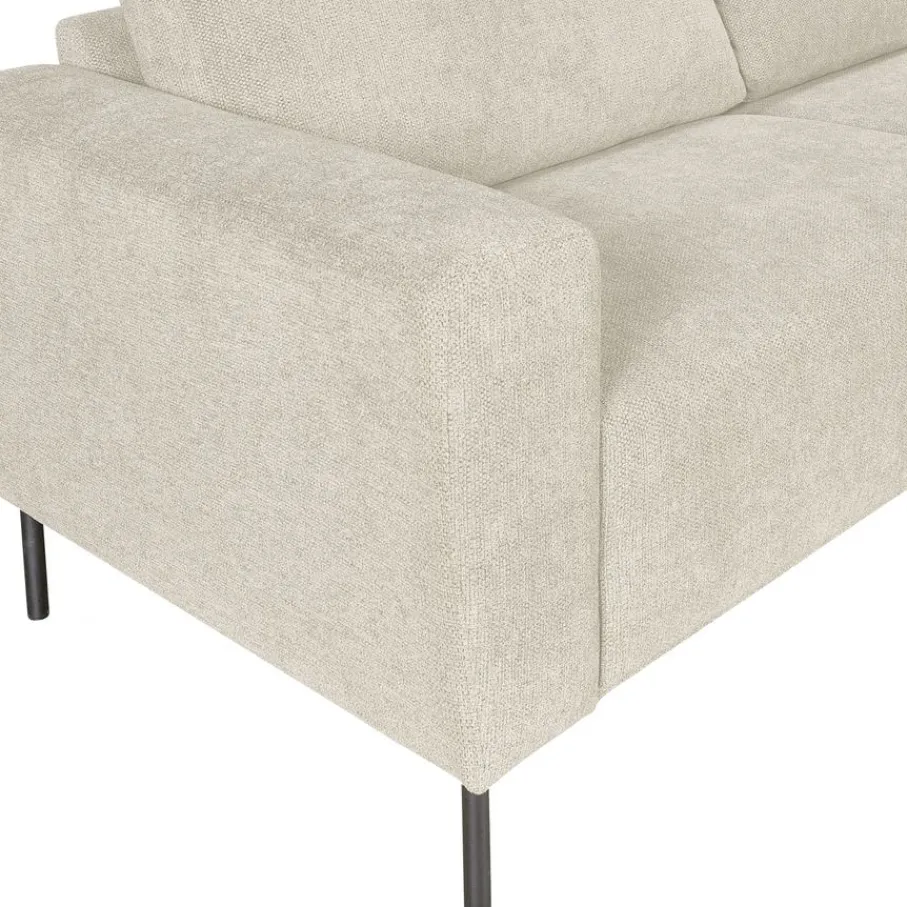 De bank is bekleed met stof Mito, een stof van 90% polyester en 10% nylon. Een sterke en slijtvaste stof met een robuuste structuur die lekker zacht aanvoelt. De kleur is Naturel, een gemêleerde licht beige kleur.