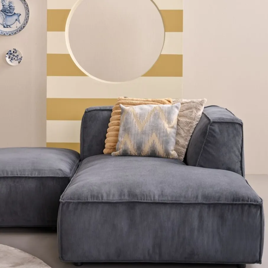 - Maak van je woonkamer een blikvanger met het trendy kubistische design, de diepe kussens en stoere stiknaden.