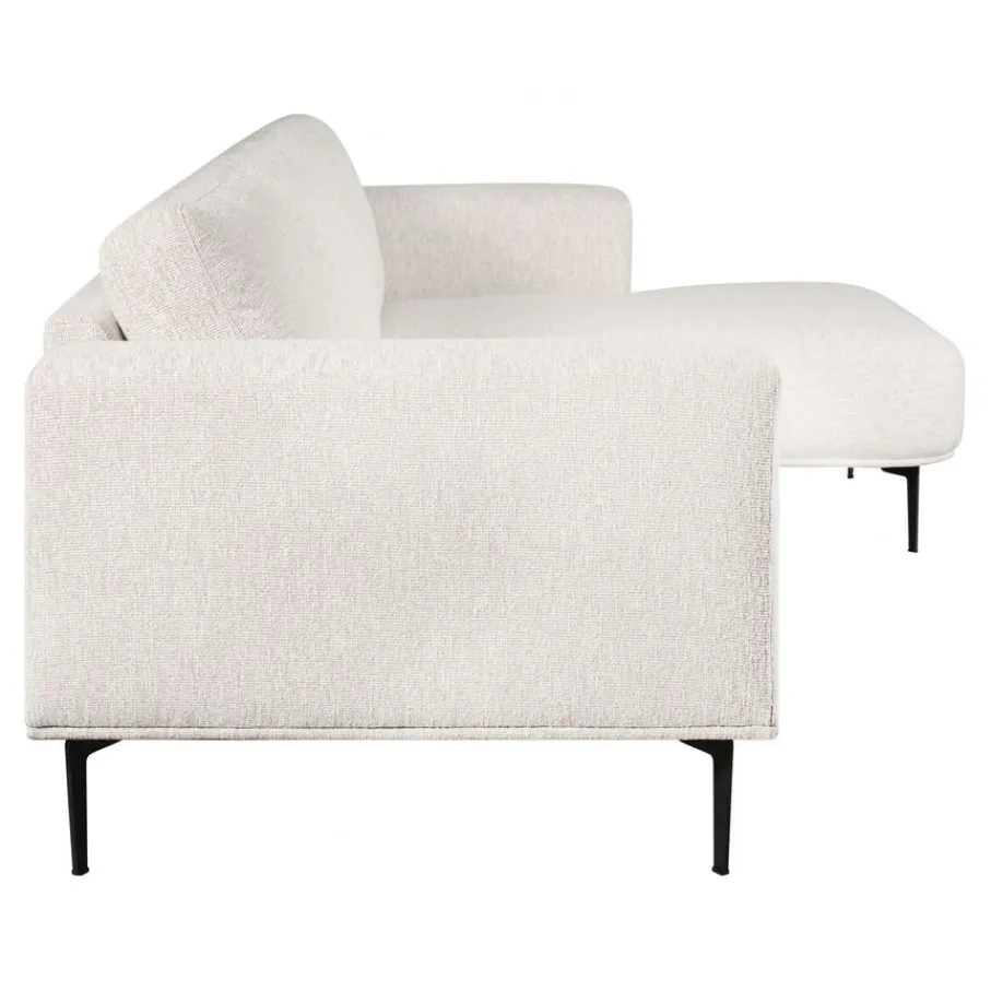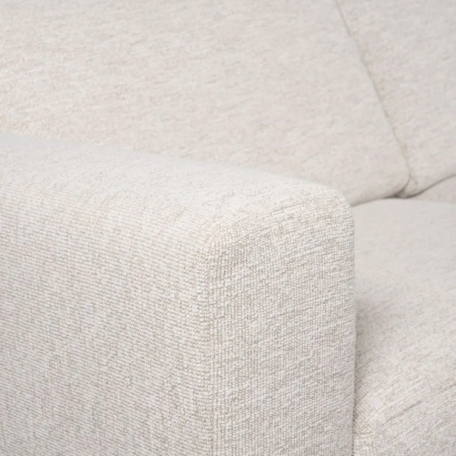 Met een bouclé stoffering voelt hoekbank Fame zacht en uitnodigend aan. De stof heeft een rijke structuur en is gemaakt van 95% polyester en 5% nylon Dit zorgt niet alleen voor een aangename grip, maar maakt er ook een sterke bekleding van die lang mooi blijft. De kleur Linen is een crème tint met subtiele kleurnuances.