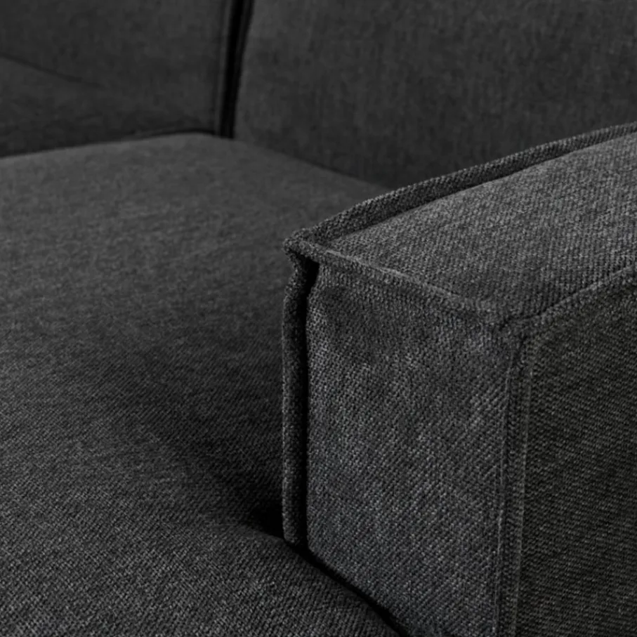 De bekleding is een geweven stof met linnenlook. Het voelt zacht aan en nodigt uit tot lange avonden ontspannen loungen. De antraciet kleur is een donkergrijze, bijna zwarte, kleur.