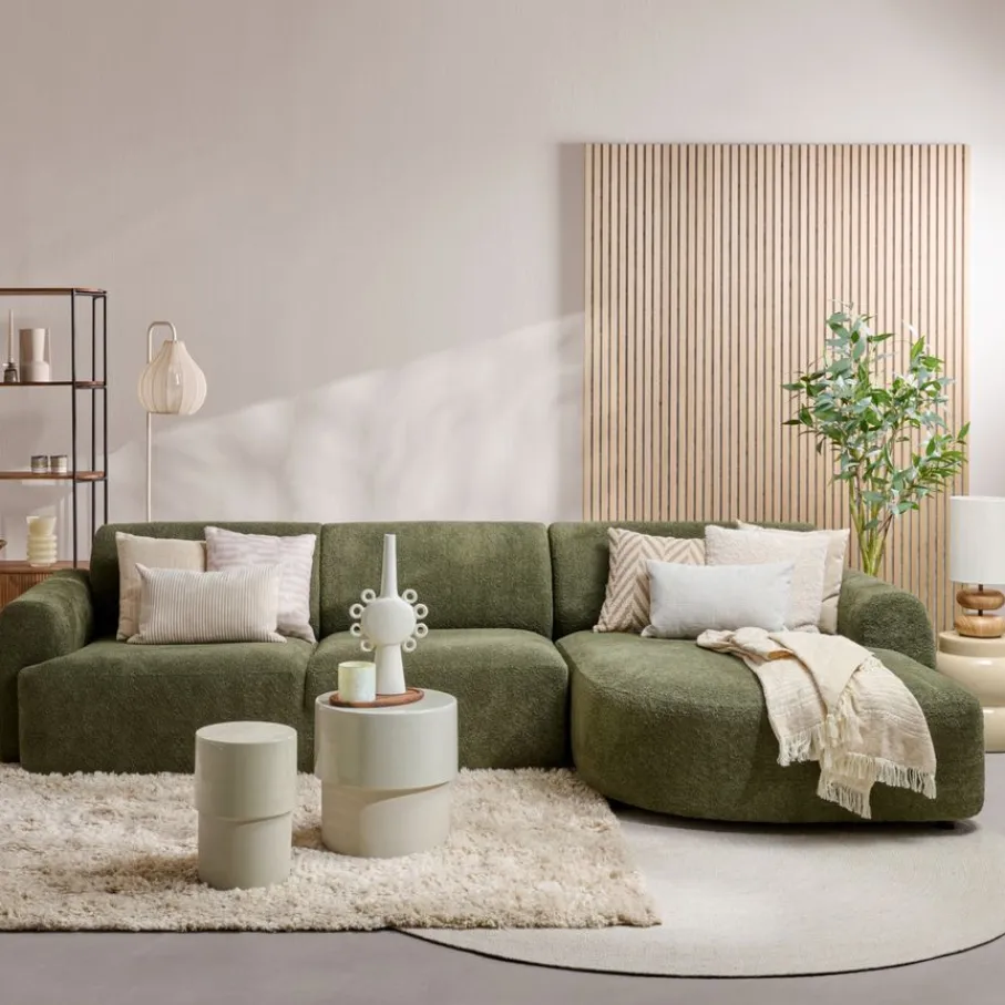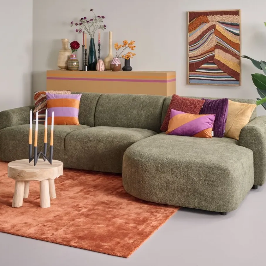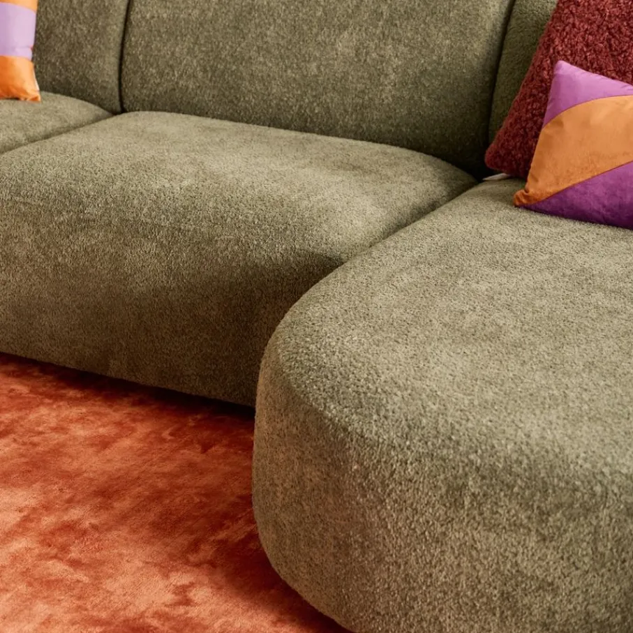 - De zachte bouclé bekleding met rijke structuur voelt niet alleen heerlijk aan, maar geeft je woonkamer ook direct een warme en luxe uitstraling.