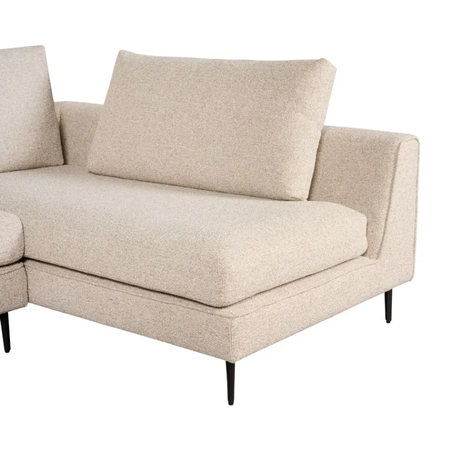 Geniet van de perfecte balans tussen comfort en design die hoekbank Source je biedt. De zitting met koudschuim zorgt voor ultiem zitcomfort, enerzijds stevig maar ook soepel. Deze zitkussens zijn los, maar wel voorzien van klittenband. Hierdoor blijven ze goed op hun plaats liggen. De drie losse rugkussens met dacron vulling zijn flexibel op de bank te gebruiken, leg ze neer waar jij wilt zitten. Klop ze regelmatig op om de kussens goed in vorm te houden. De nekrollen hebben er een strook stof aan, zodat je ze stevig achter een rugkussen kunt plaatsen. Stel je voor: creëer je eigen hoek om heerlijk te ontspannen op bank Source!