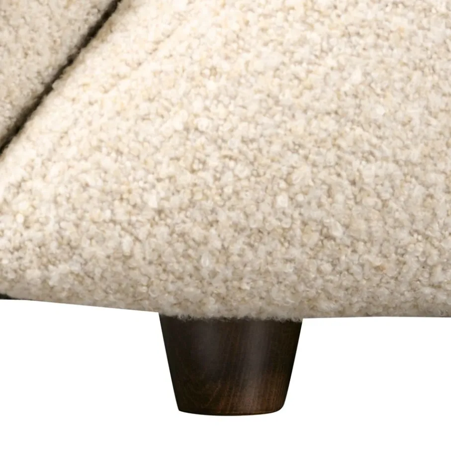 De zachte bouclé stof zorgt voor een knusse plek waar je heerlijk kunt ontspannen na een lange dag. Het bestaat uit 81% polypropyleen en 19% polyester. Deze rijke structuur stof heeft kleur Birch, een gemêleerde crème/beige tint.