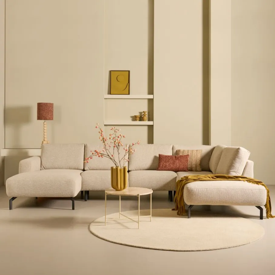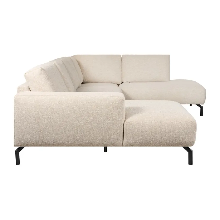 Niet alleen vanbinnen, ook van buiten is hoekbank Vibe een echte topper. De aangename en zachte bekleding heeft een robuuste weving en is gemaakt van 100% polyester. De beige kleur is een gemêleerde tint die makkelijk te combineren is. Het nodigt uit tot lekker loungen en is bovendien gemaakt om lang mooi te blijven. De zwart metalen poten geven de bank een moderne touch en zorgen voor een stabiele basis.