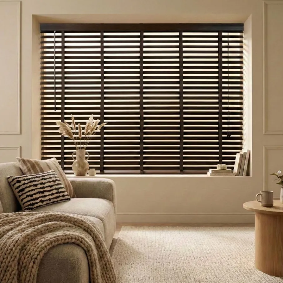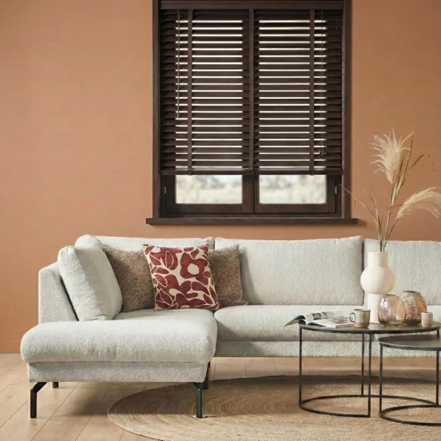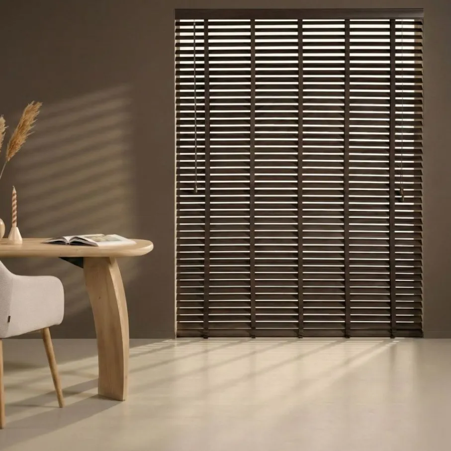 Hout never goes out of style! De warme uitstraling van een houten jaloezie is een look die goed matcht in diverse woontrends. Bijvoorbeeld in een stijl met neutrale beige en wittinten, gecombineerd met lekker veel planten. Donkerbruin hout staat ook goed in een klassiek, moderne sfeer.