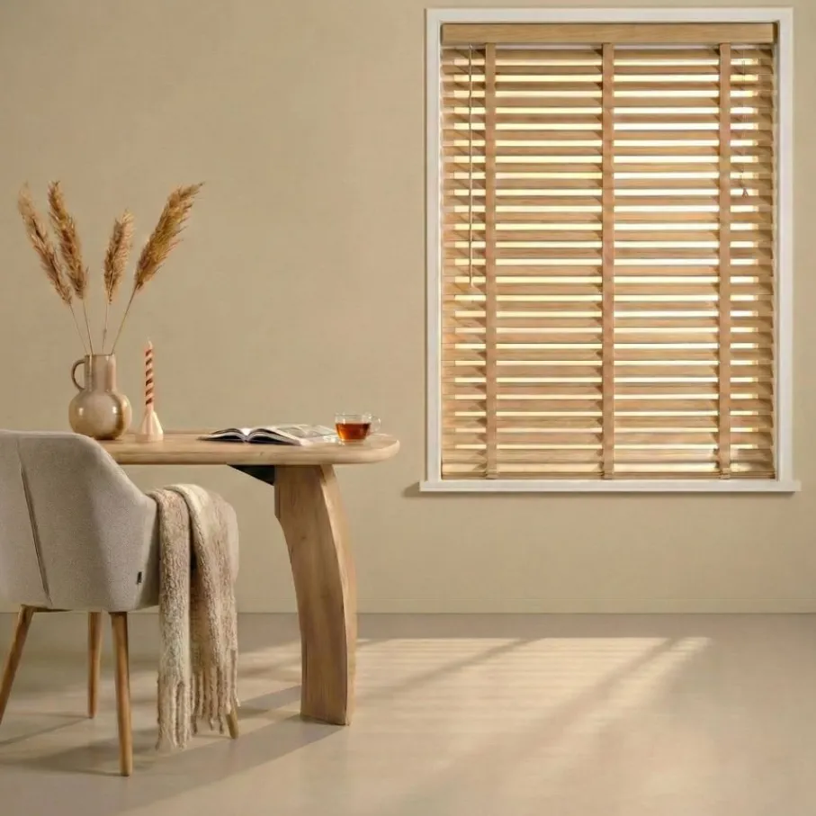 - Breng direct een warme, natuurlijke sfeer in huis met deze prachtige houten jaloezie, perfect voor een knusse look.