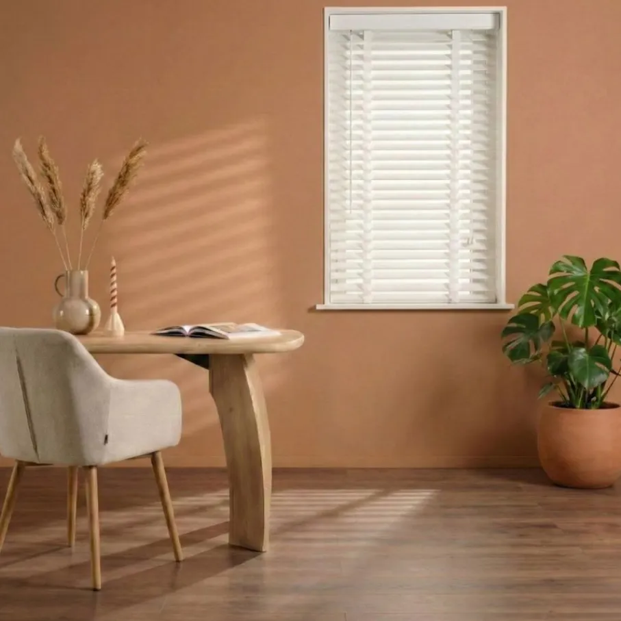 - Breng direct een rustige en frisse sfeer in je huis met deze stijlvolle, witte houten jaloezie.
