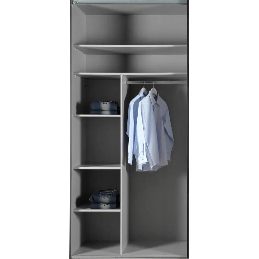 De kastindeling is 107 cm breed, 50 cm diep en 150 cm hoog. De kleur van het interieur is lichtgrijs. Er zijn diverse Aalst schuifdeurkasten leverbaar en ook meer bijpassende kastaccessoires. LET OP: deze kastindeling past in de kasten met een breedte van 225 cm.