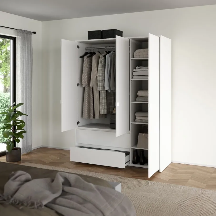- Houd je kleding heerlijk overzichtelijk met de combinatie van een hangplek, verstelbare legplanken én twee ruime lades.