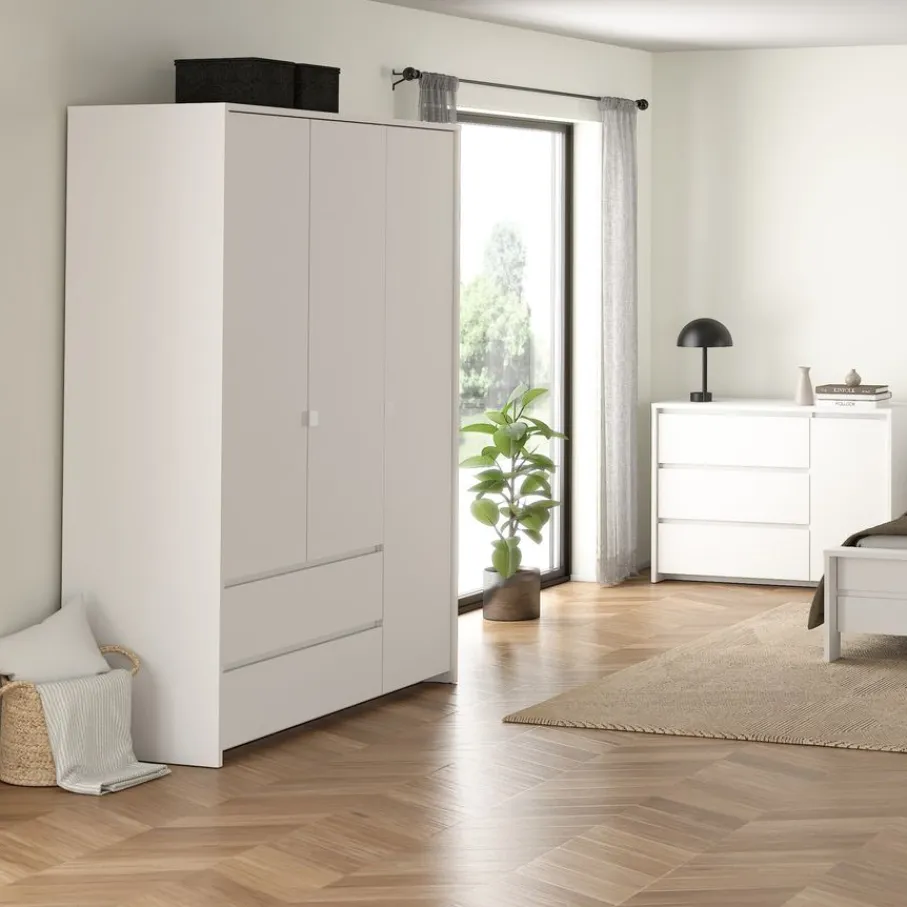 Atlanta is de perfecte opbergoplossing met 3 deuren en 2 brede lades. In de kast zitten 6 legplanken, waarvan 5 verstelbaar en één vast. Met een combinatie van hangruimte en legplanken biedt kledingkast Atlanta flexibele opbergmogelijkheden om je kleding georganiseerd en toegankelijk te houden.