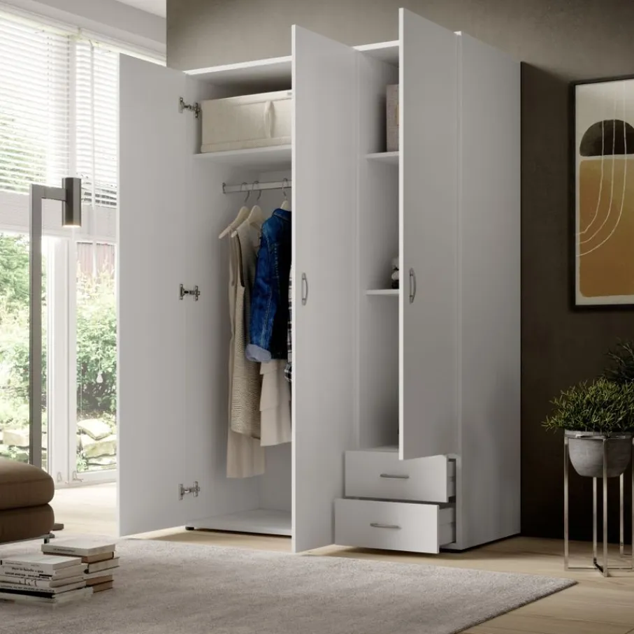 - Houd je garderobe heerlijk georganiseerd met de slimme indeling van een roede, meerdere legplanken én twee handige lades.