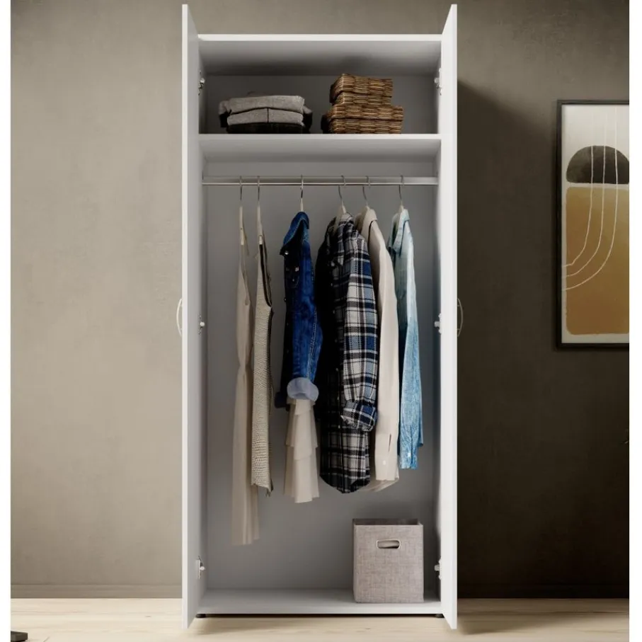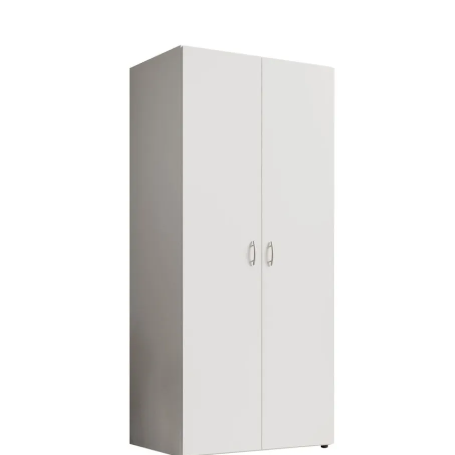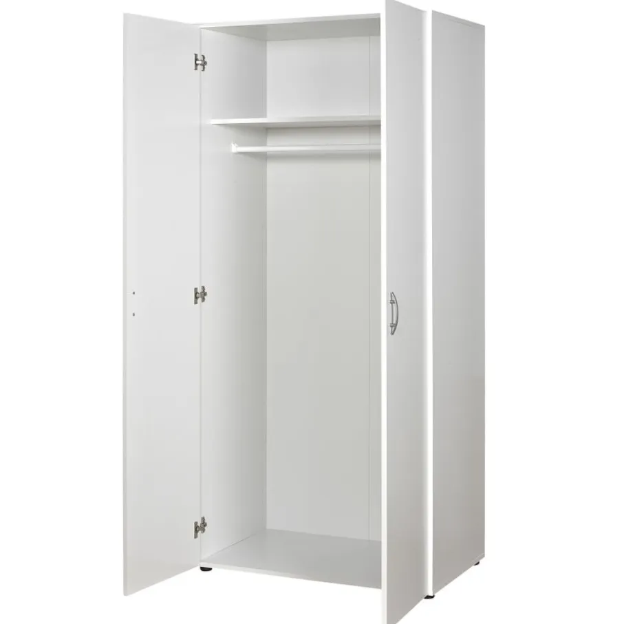 De kast heeft 1 ruim vak met daarin 1 legplank en 1 roede. De deuren zijn voorzien van half ovale handgrepen met een metal look.
