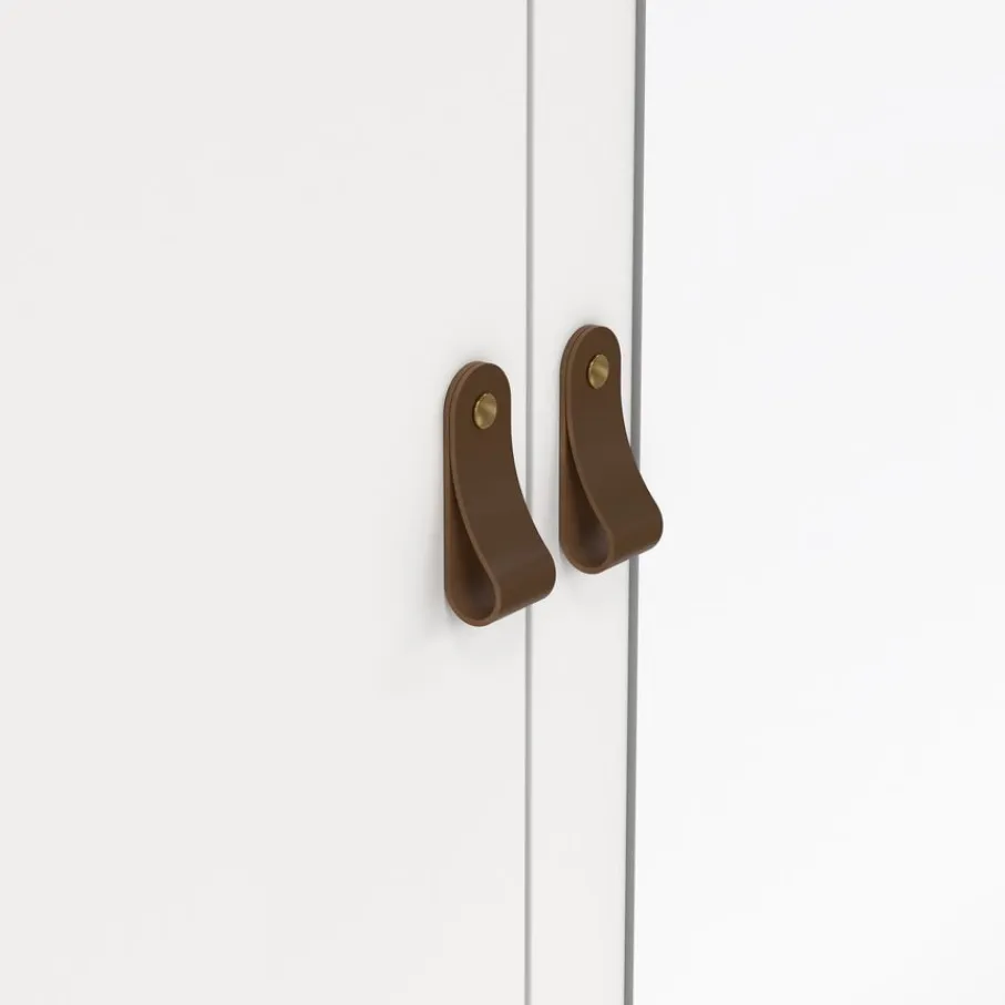 - Bepaalt zelf de sfeer in je kamer met de keuze uit twee sets trendy handgrepen: stoere leren lussen of elegante metalen knoppen.