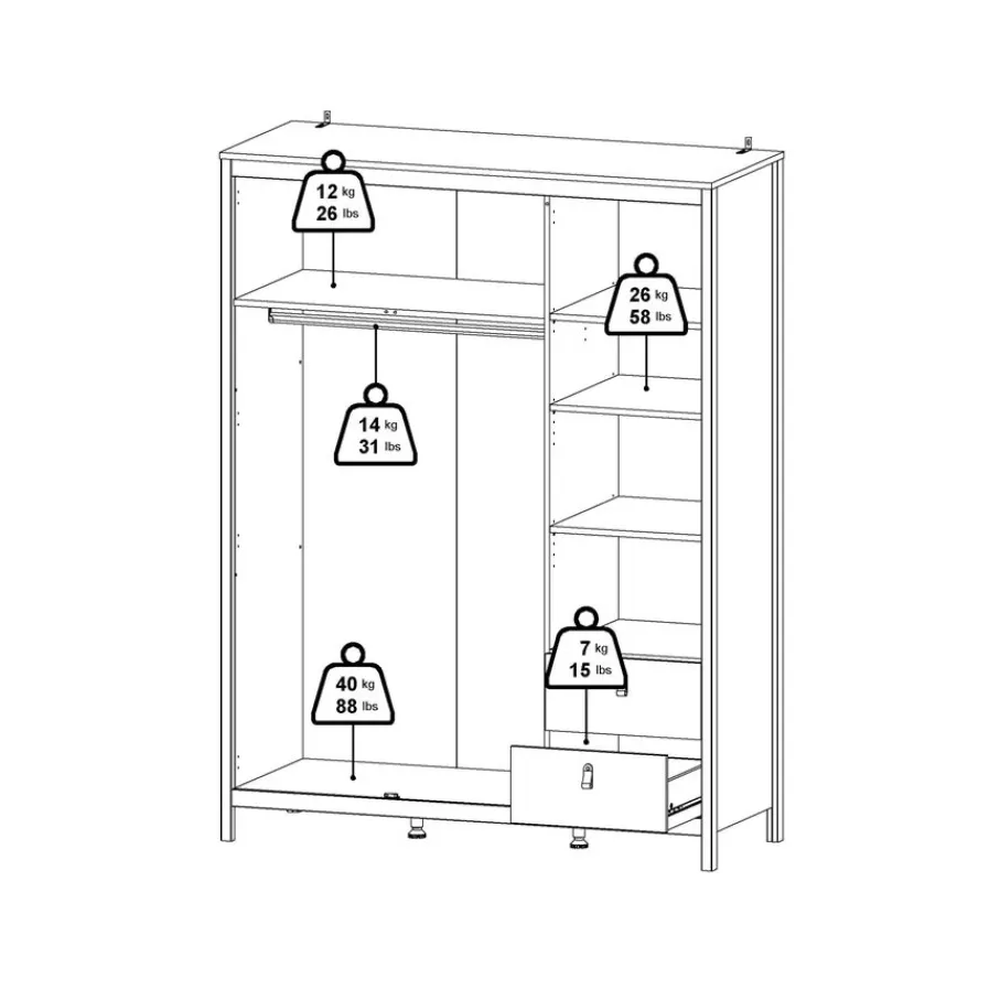 - De drie draaideuren vragen om wat vrije ruimte voor de kast, zodat je ze comfortabel kunt openen en makkelijk bij al je spullen kunt.