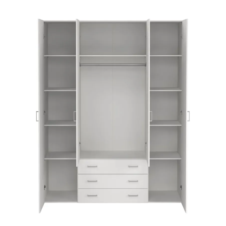 - Enorm veel opbergruimte met maar liefst vier deuren, een handige roede, voldoende legplanken én drie ruime lades.