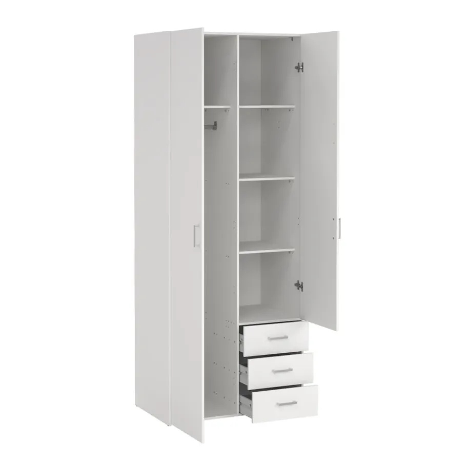 - Super slim ingedeeld met een roede voor hangkleding, handige legplanken en maar liefst drie ruime lades.